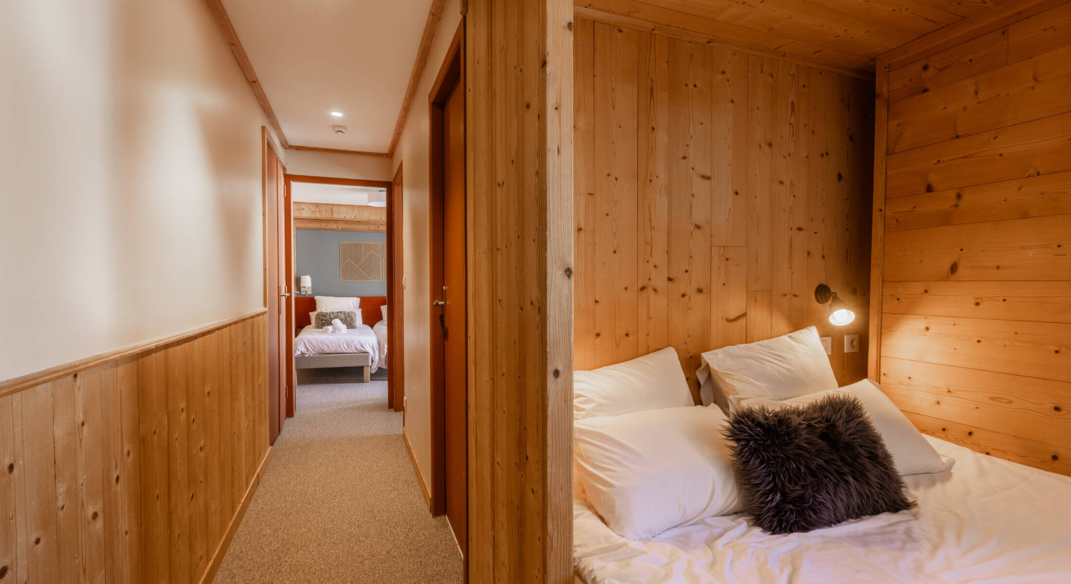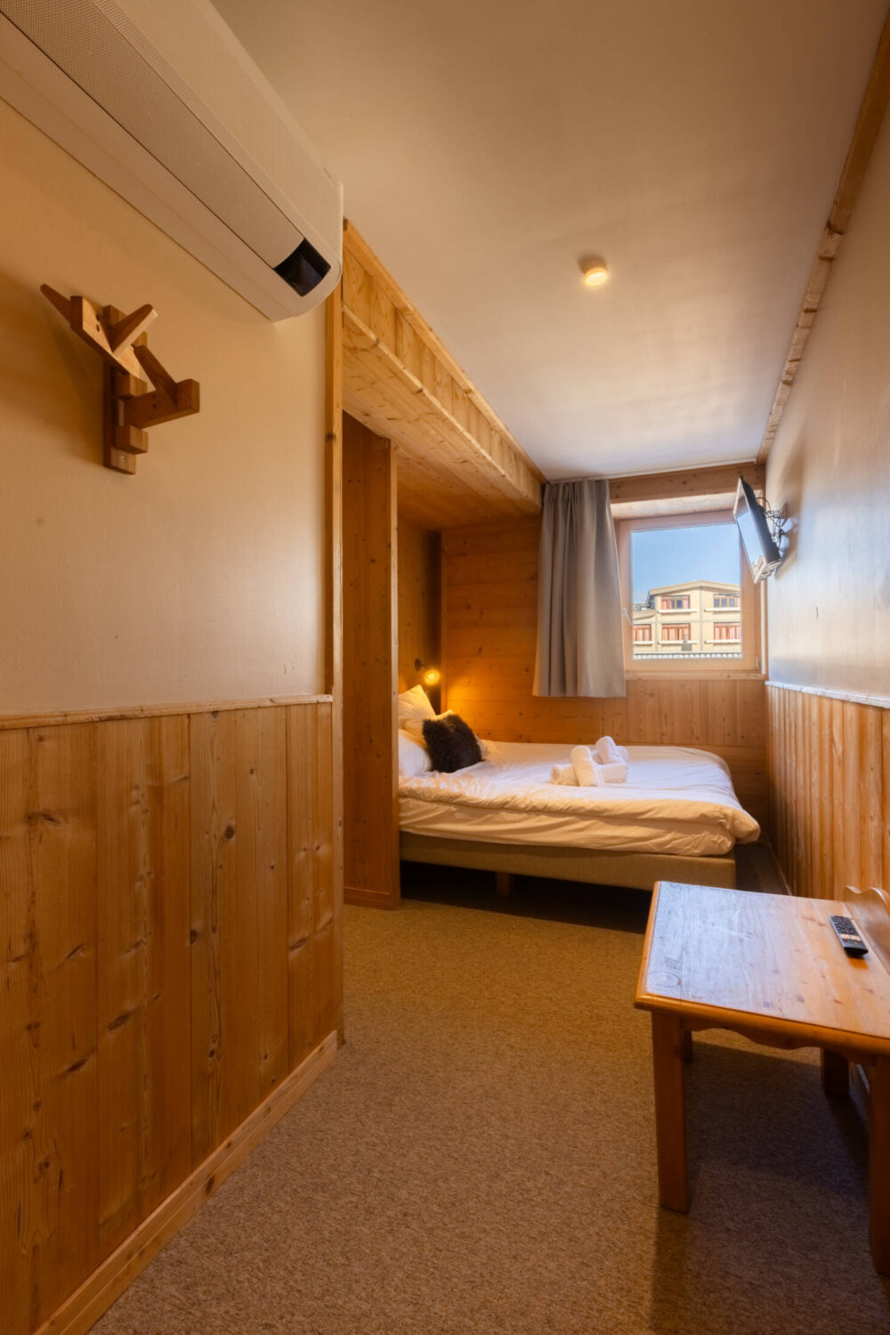 Nos chambres familiales disposent d’un lit double et de deux lits simples avec une séparation entre les espaces nuit. Elles sont idéales pour un séjour en famille ou entre amis.