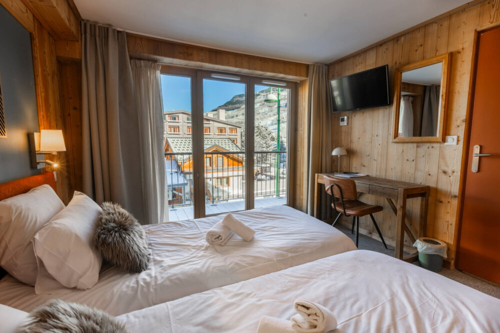 Profitez de votre balcon privé, aménagé avec des chaises — idéal pour respirer l’air pur de la montagne et admirer la vue